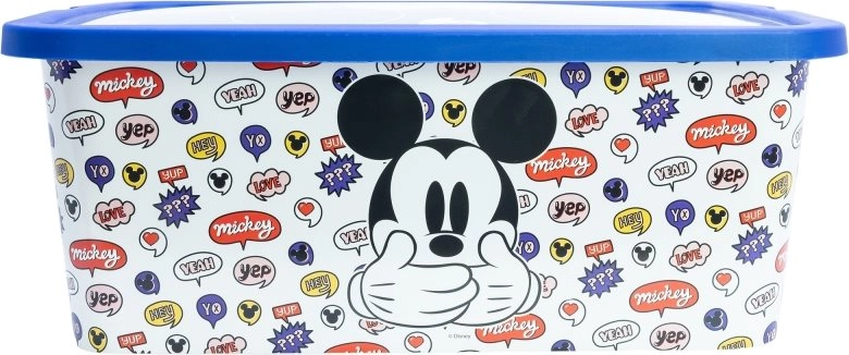 Ohranite red s stilom. Barvit dizajn s priljubljenim motivom MICKEY vnese v otroško sobo igrivo vzdušje, medtem ko čvrsta plastična konstrukcija zagotavlja dolgo življenjsko dobo. Škatlo zlahka prenašate in hitro zaprete zahvaljujoč odstranljivemu pokrovu.