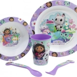 Otroški jedilni set 5v1 s priljubljenim motivom Gabinin čarobni domek motivira najmlajše k samostojnemu in veseljemu prehranjevanju. Zahvaljujoč lahkim in ergonomskim oblikam dobro leži v otroških rokah, pisana zasnova pa vsakemu obroku doda zabavo.
