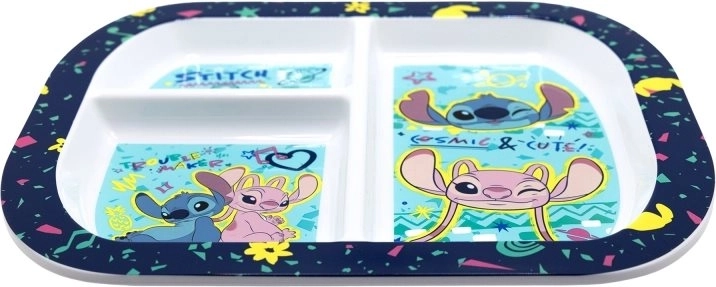 Barvit otroški krožnik z motivom STITCH bo razveselil malčke in olajšal vsakodnevno prehranjevanje. Je brez BPA, primeren za mikrovalovno pečico in zaradi odporne plastike zdrži vsakodnevno uporabo.