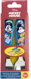 Idealen pripomoček za najmlajše, ki se učijo uporabljati prave jedilne pribore. Set vsebuje zaobljeno vilico in žlico, ki sta zasnovani za enostavno in varno uporabo. Okrašeni ročaji z dizajnom Mickey Mouse bodo navdušili vsakega otroka in naredili obrok prijetno doživetje.