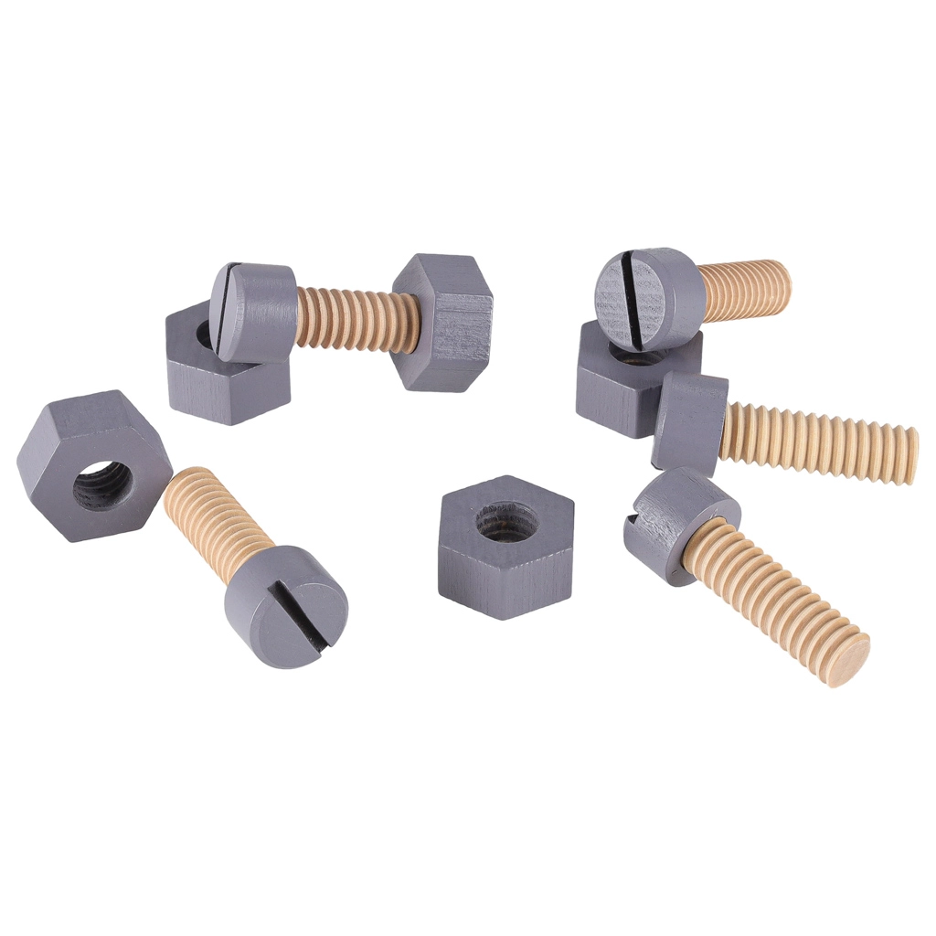 Žaga, kladivo, izvijač, francoski ključ, merilo, vijaki in matice – vse potrebno za ustvarjalno sestavljanje in razvoj fine motorike.