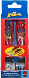 Praktičen komplet otroškega jedilnega pribora iz nerjavnega jekla bo vašim otrokom pomagal osvojiti prve korake k samostojnemu prehranjevanju. Žlica in vilica imata varne, zaobljene oblike in se udobno držita tudi v drobnih rokah. Izviren dekor na ročajih z motivom SPIDER-MAN bo otroke navdušil in spodbudil njihov apetit.