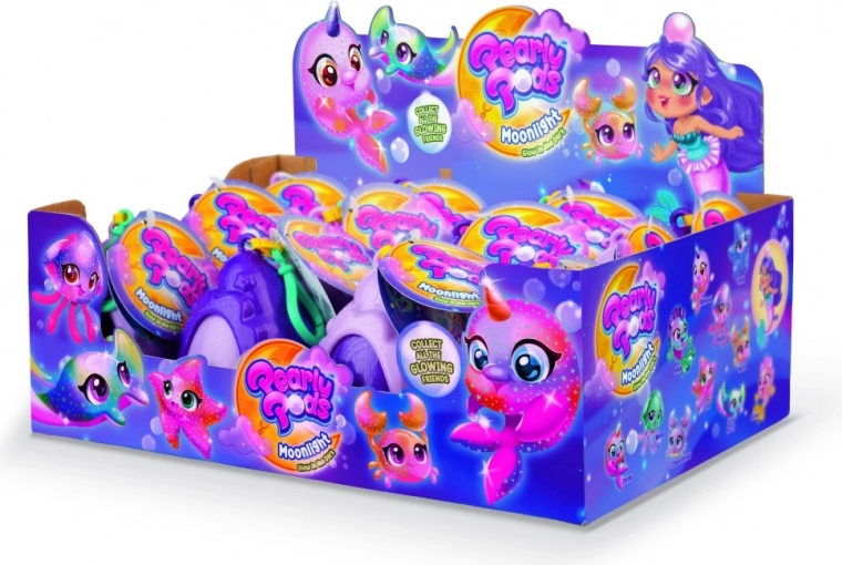 Svetleči prijatelji Pearly Pods Moonlight so mehke plišaste figurice v prikupnih barvah, ki se skrivajo v učinkovitem bleščečem ohišju. Le osvetlite jih in v temi zažarijo z nežno svetlobo, ki otrokom daje občutek varnosti in sobico spremeni v čaroben kotiček.