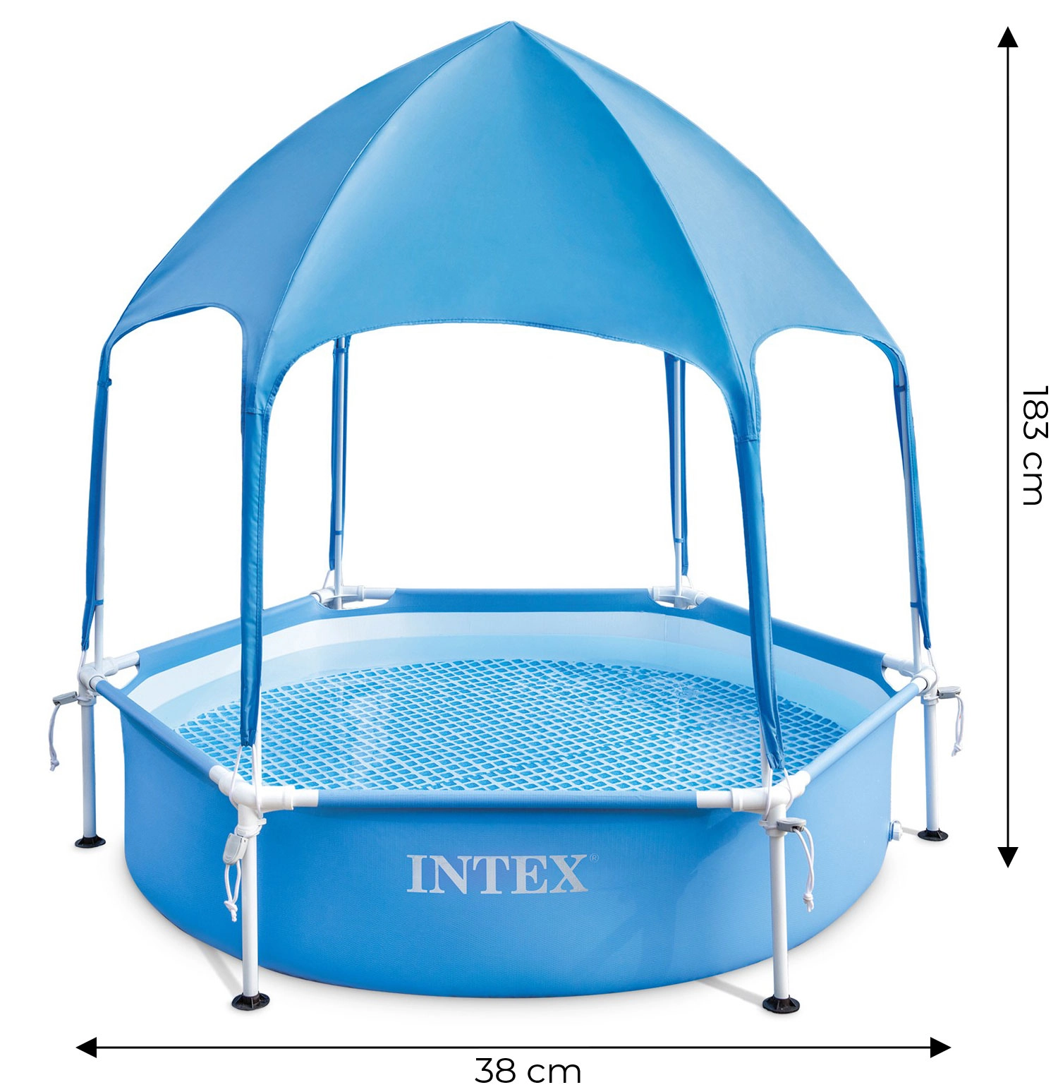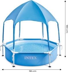 Predstavljamo okrogel otroški bazen INTEX s kovinskim okvirjem z zaščito pred soncem, idealen za vroče poletne dni na vrtu. Ta bazen je zasnovan tako, da otrokom omogoča brezskrbno zabavo in čudovite doživetja!