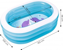 Morska zasnova z motivi delfinov, želv in mehurčkov spodbuja domišljijo in ustvarjalnost, kar vodi do nepozabnih doživetij pri vsakem kopanju. Izdelan iz kakovostnega materiala, ki zagotavlja trdnost in stabilnost zahvaljujoč trem napihljivim obročem.