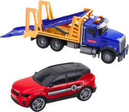 Del kompleta sta dva športna osebna avtomobila, ki ju je mogoče zlahka naložiti in razložiti s prikolice. Transporter ima premične dele, ki zvesto posnemajo funkcije pravega prevoznega sredstva.