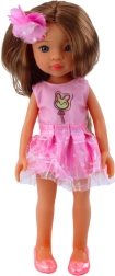 Punčka ima skrbno izdelan obraz z nežnim nasmehom in velikimi, sijočimi očmi, ki ji dajejo prijazen videz. Dolgi temno rjavi lasje so okrašeni s cvetlico, ki poudari njen dekliški značaj. Zaradi estetske izdelave je punčka takoj privlačna in hitro postane priljubljena prijateljica pri vsakodnevni igri.