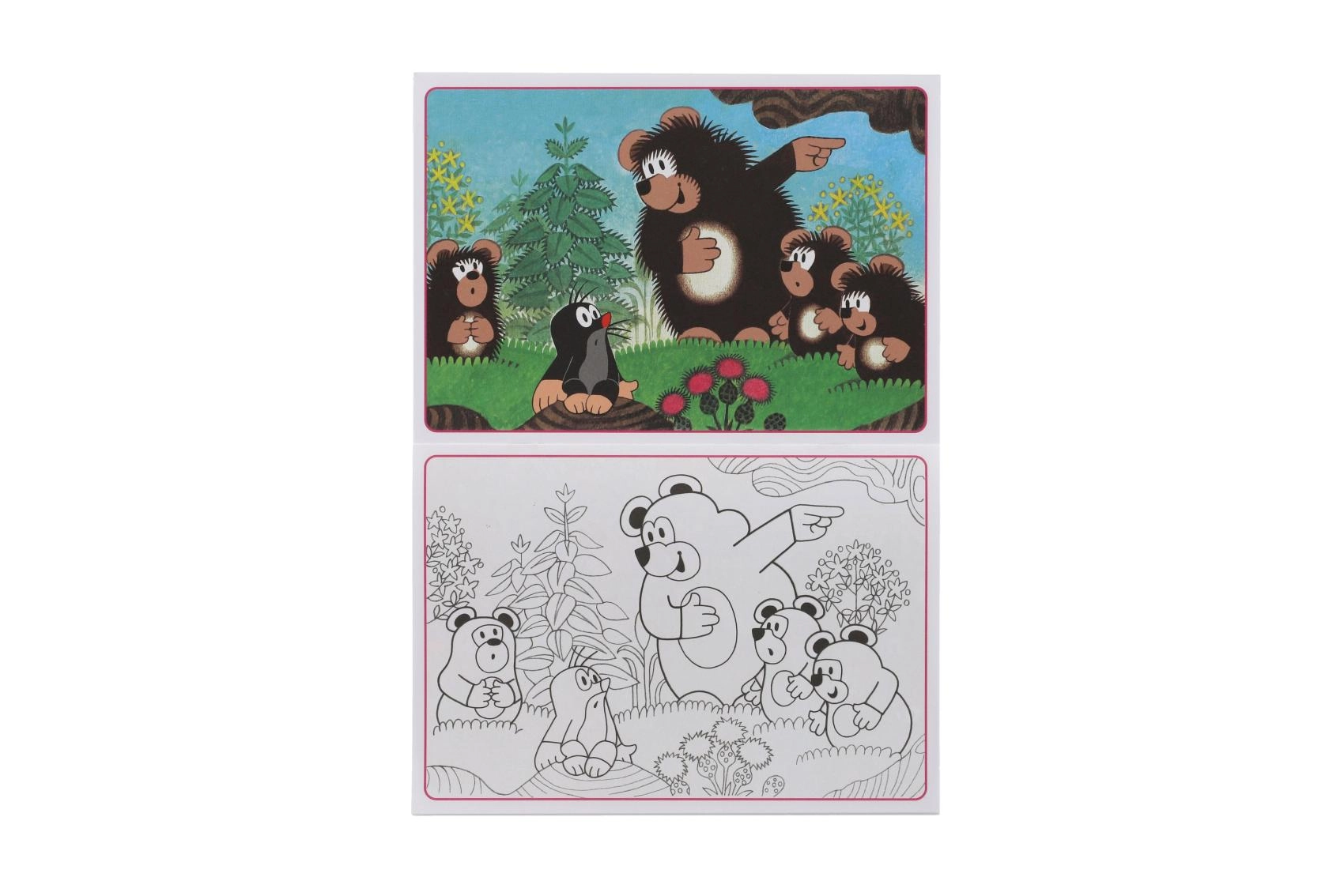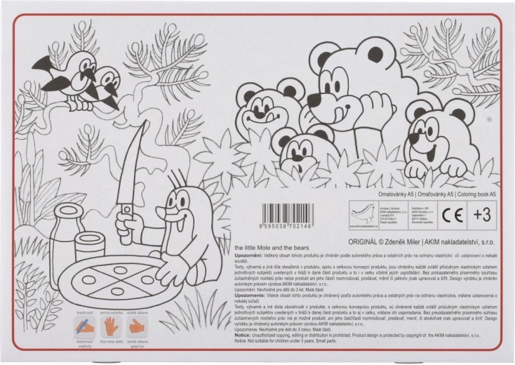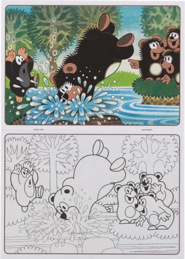 Odkrijte čar brezčasnih pobarvank z motivi KRTEK in medvedi. Zahvaljujoč praktičnemu formatu A5 se prilegajo v nahrbtnik ali torbico, zato lahko otroci ustvarjajo doma, na poti ali v vrtcu. Vsak list ponuja navdihujoč barvni vzorec in nasproti ležeč črno-bel motiv za barvanje, kar otrokom olajša izbiro barv in spodbuja njihovo domišljijo.