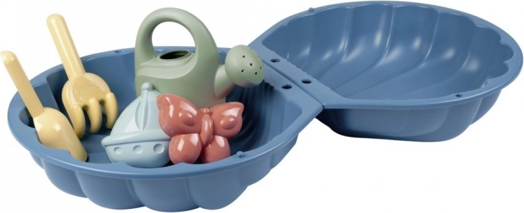 Dvojna peskovnika se zlahka odpreta, dodatki pa vključujejo vsa potrebna orodja za ustvarjalno igro, vključno s kanglico, grabljicami in modelčki.