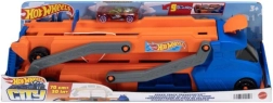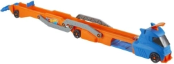 Pripravite se na osupljive dirke in vratolomne trike z vlačilcem Hot Wheels. Ta ogromen vlačilec lahko naloži do devet avtomobilčkov, ki jih zahvaljujoč raztegljivemu tovornemu delu do dolžine 76 cm izstrelite kot blisk. Kabina služi kot izstreljevalna naprava in omogoča avtomobilčkom, da se podajo na nore vožnje v nove pustolovščine.