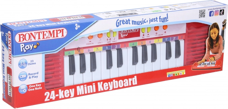 Bontempi elektronske mini tipke, 24 tipk, prinašajo zabavo in interaktivnost. Vsebujejo različne melodije in uporabne funkcije za vsakega malega glasbenika.