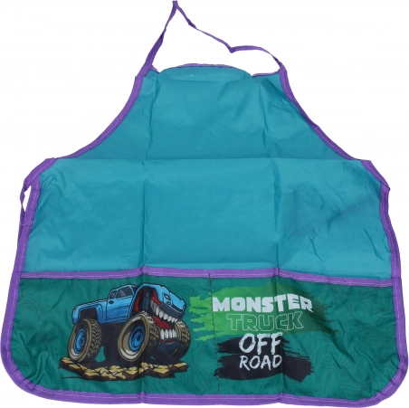Otroci lahko izbirajo med pestro ponudbo dizajnov: nogomet, mačka, gamer, monster truck, dino, jež ali pes + mačka. Predpasnik je primeren za šolo, krožke in domače slikanje.