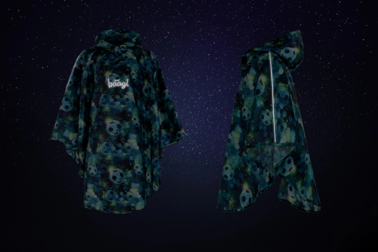 Odkrijte zanesljivo zaščito pred dežjem v igrivem futbol dizajnu. Otroška pelerina BAAGL je lahka, zložljiva in nepropustna, zato je odlična za v šolo, na igrišče in na izlete. Kapuca s šiltom ščiti obraz pred kapljami, dizajn s heksagonalnimi vzorci in žogami pa navduši otroke.
