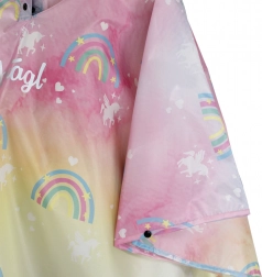 Uživajte v suhih in udobnih pustolovščinah v dežju. Otroški dežni pončo BAAGL z motivom enorogov navduši z igrivimi barvami in funkcionalnimi detajli. Kapuca s šiltom ščiti obraz pred kapljami, medtem ko se vodoodporen, lahek material prijetno nosi in enostavno zloži.