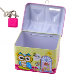 Ta hranilnica je opremljena s praktično kovinsko ključavnico z dvema ključkoma, kar ji daje značaj pravega "sefa" in omogoča otroku občutek odgovornosti za svoje prihranke. Močna konstrukcija iz trpežnega kovine zagotavlja odpornost proti vsakodnevni uporabi in otroškim eksperimentom. Zaradi strešne odprtine za vstavitev kovancev je ne le uporabna, temveč tudi zelo privlačna vizualno. Popolno darilo, ki združuje igro, dekoracijo in izobraževanje.