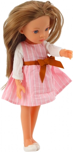 Punčka Pretty Girl je vrhunec vsake zbirke za deklice zaradi svojega lepo oblikovanega obraza z nežnim nasmehom in velikimi očmi. Ima mehke in na dotik prijetne lase, ki jih je mogoče česati in oblikovati. Oblečena je v rožnato obleko z belimi črtami, dopolnjeno z belimi rokavi in okrašeno rjavo mašno v pasu. To elegantno kombinacijo dopolnjujejo klasični beli čevlji. Obleko je mogoče sleči, kar omogoča igro preoblačenja in ustvarjanje lastnih modnih kreacij.
