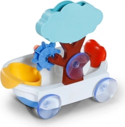 Ta igrivi kopalni set spremeni vsako umivanje v zabavno vodno dogodivščino. Otroci lahko zajemajo vodo v lonček, jo prelivajo v drevesno prho in opazujejo, kako se vodno kolo zavrti. Zahvaljujoč priseskom osnova stabilno drži na gladki površini kadi ali ploščic.