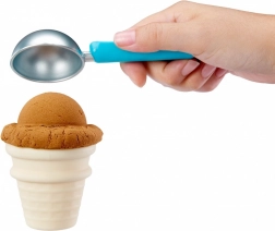 Z modelirnim peskom in spretno zajemalko otroci zlahka ustvarijo realistične kepice za kornete in skodelice – zabava in vadba fine motorike v enem.