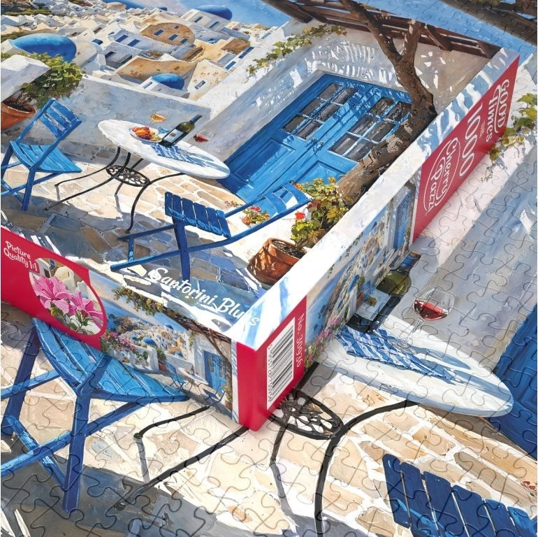 Eleganten motiv belih hišk in modrih streh otoka Santorini prinaša v sestavljanje mirno vzdušje in odlično vizualno doživetje. Sestavljanka s 1000 koščki je idealna za srednje izkušene in izkušene ljubitelje sestavljank ter ponuja prijetno kombinacijo sprostitve in zbranosti.