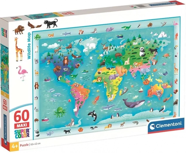 Sestavljanka Zemljevid sveta z živalmi MAXI znamke Clementoni je idealno darilo za vse male in velike pustolovce. Ta igrača ne le krepi njihove sposobnosti sestavljanja, ampak tudi razvija pozornost otrok do podrobnosti in sposobnost iskanja.