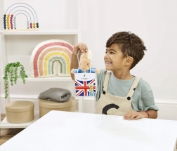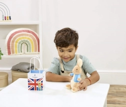 Igrača je izdelana iz skrbno izbranih, kakovostnih in trajnostnih materialov ter prihaja v elegantni darilni vrečki z motivom Union Jack – pripravljena za takojšnje obdarovanje.
