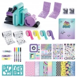 Odkrijte zabavno kreativno studio 3 v 1 za ustvarjanje lastnih okraskov in nalepk za dnevnik ali zvezek. Set omogoča okraševanje nalepk, izrezovanje oblik, utiskovanje reliefov v papir in risanje s šablonami. V paketu najdete vse potrebno, vključno s studiem, barvnimi listi, flomastri in nalepkami. Primerno za otroke od 6 let.