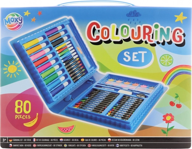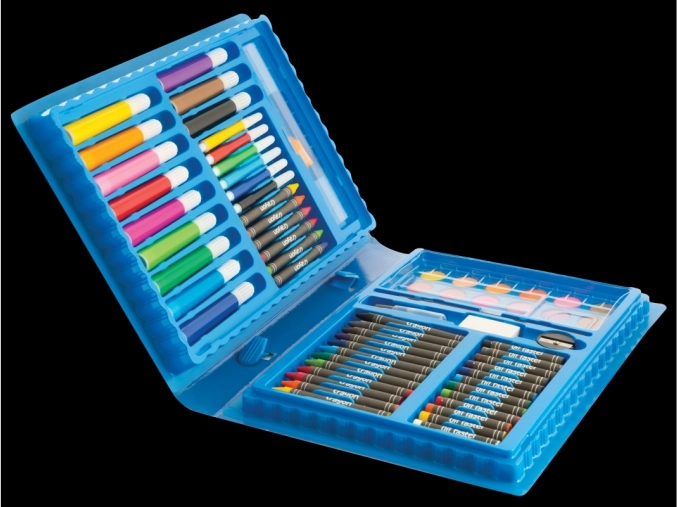 Popoln likovni komplet za male in velike umetnike v praktičnem plastičnem kovčku. Vsebuje vse potrebno za risanje in slikanje – od vodenk do barvic – skupaj 80 kosov. Idealno za ustvarjanje doma, v šoli in na poti, s kompaktnimi merami ter pripomočki za udobno uporabo.