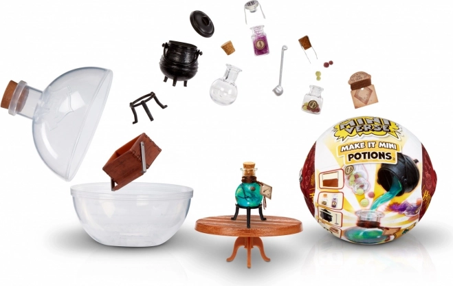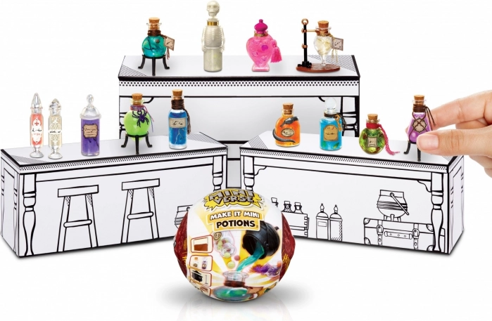 Vstopite v čarovniški svet HARRY POTTER z originalnimi mini replikami napojev znamke MGA's MINIVERSE. V vsaki krogli najdete naključni set s sestavinami, orodji in navodili – vse za izdelavo vaše lastne mini miksture. Po mešanju izpostavite soncu ali drugi UV svetlobi, pustite, da otrdi, in jo ponosno razstavite na polici.