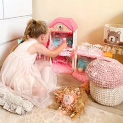 V paketu sta tudi punčka in popolna oprema sob. Modularni koncept spodbuja fino motoriko, razvoj ustvarjalnosti in socialne veščine pri skupni igri. Kakovostna izdelava iz varnih materialov zagotavlja dolgo življenjsko dobo in brezskrbno uporabo.