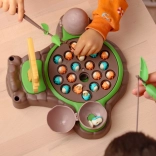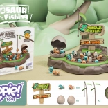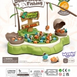 Podajte se na prazgodovinski ribolov z igro, ki otroke takoj posrka v dogajanje. Okrogla platforma se vrti, dinozavrovi gobčki pa se ritmično odpirajo in zapirajo – naloga je ujeti jih v pravem trenutku z magnetno palico. Igra spodbuja potrpežljivost, opazovanje in sodelovanje med otroki in odraslimi.
