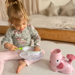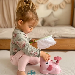Privlačna zasnova rožnatega slona motivira otroke k igri in vsakodnevnemu treningu koordinacije.