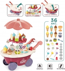Ta igrača simulira vlogo prodajalca in kupca, kar pomaga razvijati socialne veščine in zavest. Voziček vključuje veliko kakovostnih dodatkov in nalepk za igro in prodajo sladoleda in slaščic. Igrača omogoča učenje osnovnih matematičnih in finančnih spretnosti s simulacijo nakupov z dodanimi kovanci.