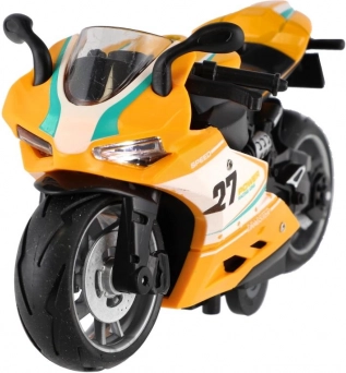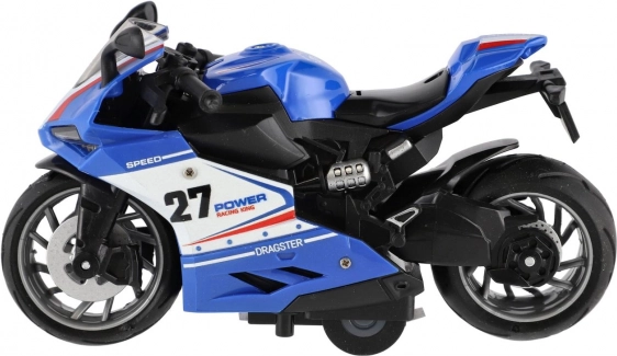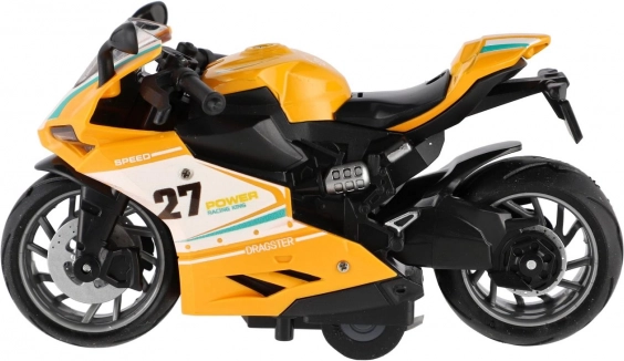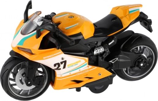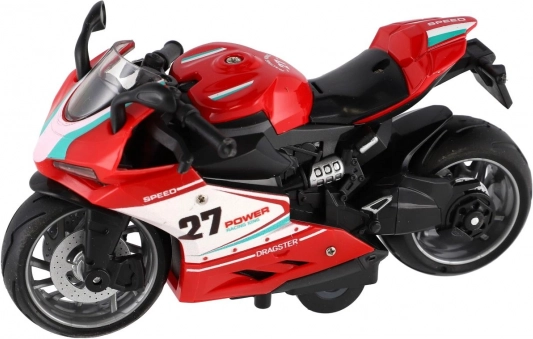 Ta plastični cestni motor združuje dinamičen dizajn z enostavnim upravljanjem. Dovolj je, da ga potegneš nazaj in spustiš – motor se hitro požene in otrokom ponudi akcijsko zabavo. Vgrajena luč in zvok dodajata na realističnosti, zato vsaka vožnja deluje kot pravi dirkalni dvoboj.
