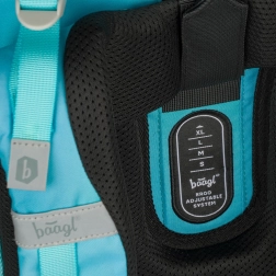 Šolska aktovka Delfin od Baagl je opremljena s sistemom za prilagajanje hrbtišča ERGO ADJUSTABLE, ki omogoča prilagoditev velikosti aktovke potrebam rastočega otroka. Zahvaljujoč popolnoma nastavljivim trakom se aktovka popolnoma prilega postavi šolarja.