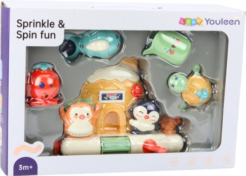 Spremenite kopanje v zabavno vodno avanturo. Barvita osnova v obliki igluja se napolni z vodo, otroci pa lahko upravljajo pršce, vrtljivke in curke, ki sprožijo igrivo fontano. Figure morskih živalc ob stisku špricajo vodo in spodbujajo senzorično zaznavanje.
