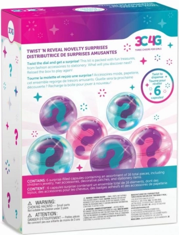 Odkrijte veselje s Twist and Reveal – zavrtite številčnico in razkrijte 16 presenečenj v 6 kapsulah. Čakajo vas modni dodatki, pisane pisalne potrebščine in ogromno zabave za neskončno igro. Kapsule lahko po razkritju ponovno napolnite in uporabljate znova, zato vznemirjenje nikoli ne konča. Odlično darilo za otroke od 8 let naprej.