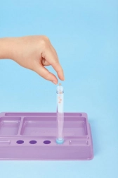 S tem ustvarjalnim kompletom si bodo otroci izdelali do tri izvirna plavajoča peresa, v katerih se med pisanjem elegantno vrtinčijo bleščice in tematske ikone. Zahvaljujoč priloženemu lijaku in igralnemu/pripravljalnemu pladnju je polnjenje preprosto in čisto. Voda ni del pakiranja.
