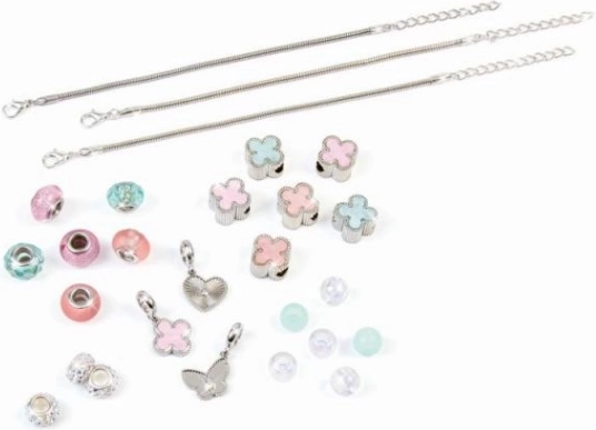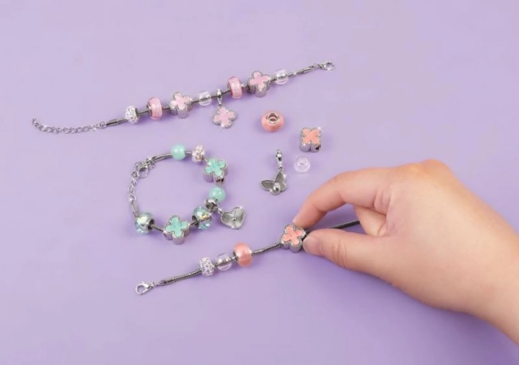 Odkrijte veselje do DIY nakita in oblikujte tri izvirne zapestnice po lastni domišljiji. Kombinirajte nežne pastelne perlice, bleščeče elemente in ljubke motive srčkov, cvetlic ali metuljev. Enostavno zapenjanje in izmenljivi obeski omogočajo hitro spreminjanje sloga glede na razpoloženje in outfit.