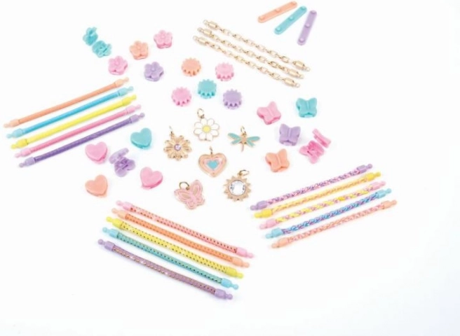 Odkrijte svojo ustvarjalnost s tem popolnim setom za izdelavo zapestnic MAKE IT REAL. Kombinirajte barvne vrvice in verižice, povežite jih z okrasnimi členki in videz dopolnite s privlačnimi obeski. Zahvaljujoč enostavnim navodilom je idealen za začetnike in mlade modne ustvarjalke od 6 let. Ustvarjajte preproste in plastene zapestnice, trendovske ovijalne (wrap) zapestnice ali kratke ogrlice ter jih zlahka menjajte in prilagajajte vsakemu outfitu.