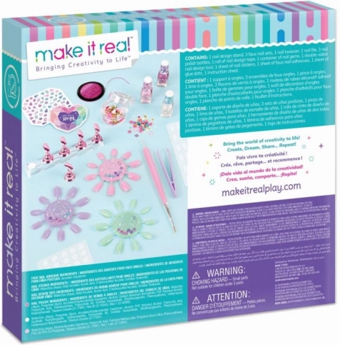 Odkrijte zabavo in ustvarjalnost s kompletom za nohte Everything Bling znamke Make It Real. Ta celovit komplet ponuja barvne lake, dragulje, nalepke in dekorativni trak za ustvarjanje izvirnih vzorcev na naravnih in umetnih nohtih. Zahvaljujoč stojalu za dizajn in obojestranskemu orodju bodo otroci zlahka ustvarili pikčaste in lastne motive. Varna sestava je primerna za otroke od 8. leta in podpira samopresojo ter ustvarjalno igro.
