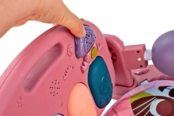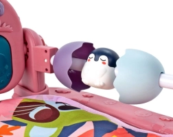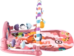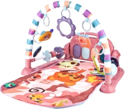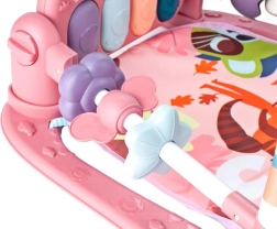 Ta rožnata izobraževalna podloga ustvari varno in spodbudno mesto za vsakodnevno igro. Barviti lok z visečimi igračami motivira dojenčka k stezanju in prijemanju, kar krepi koordinacijo oko–roka. Interaktivni klavirček z osvetljenimi tipkami ponuja 3 zvočne načine – tone lestvice Do–Re–Mi–Fa, kratke zvoke (npr. otroški smeh) in daljše melodije – ter tako prispeva k razvoju sluha in ritma.