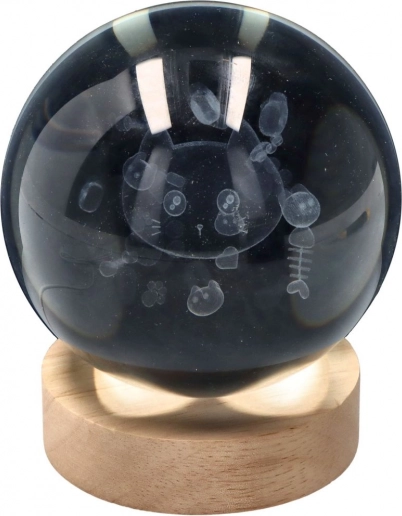 Ta kristalna lučka v obliki krogle z motivom mačke očara s svojim čistim videzom in prijetnim svetlobnim učinkom. Zaradi varčnega 1,5 W nudi nežno osvetlitev, ki je primerna za večerni počitek, kot nočna lučka ali dekoracija na polici.
