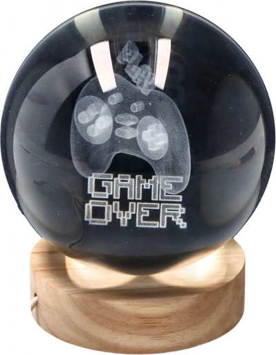 Ta kristalna krogla za igralce združuje minimalistično zasnovo in učinkovito svetlobo, ki izpostavi vašo mizo, polico ali TV kotiček. Zaradi nizke porabe 1,5 W je izjemno varčna in primerna za dolgotrajno svetenje brez nepotrebne porabe.