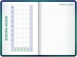 Šolski dnevnik Zeleni je idealen za študente, ki želijo imeti vse pod nadzorom. Ponuja pregleden koledar, urnik ur in prostor za zapiske.