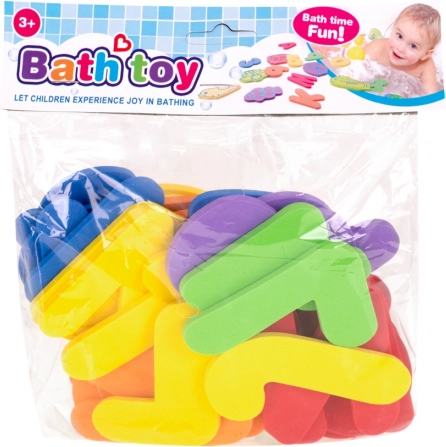 Popoln set za kopalnico ali bazen nudi 26 črk abecede in številke od 0 do 9, ki lahko prosto plavajo na vodi ali pa se, ko so mokre, pritrdijo na kad ali ploščice.