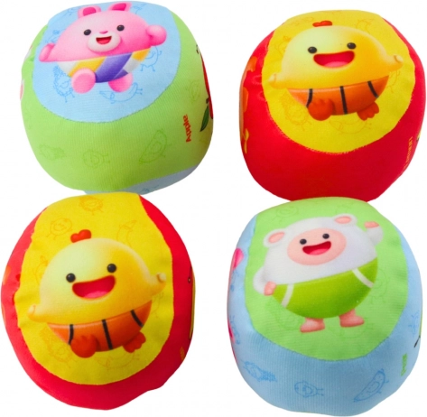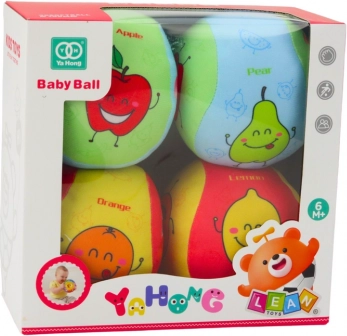 Zabaven set štirih barvitih žogic za najmlajše z veselimi sadnimi motivi. Mehak in varen material je idealen za prve poskuse metanja, lovljenja in kotaljenja. Lahka zasnova, prijazna do otrok in okolice, ter spodbuda razvoja motorike in prepoznavanja barv delajo ta set odlično izbiro za igro doma in na prostem.