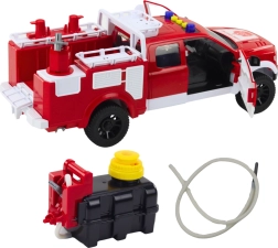 Realističen gasilski tovornjak za otroke prinaša veliko akcije in zabave. Zahvaljujoč funkciji pršenja vode, svetlobnim in zvočnim efektom se mali junaki zlahka vživijo v vlogo gasilcev. Odstranljiv rezervoar s pumpico in cevko omogoča »gašenje« požarov doma in na vrtu. Kakovostna plastična izdelava in privlačen videz ga naredita idealno darilo za vsakega ljubitelja interventne tehnike.