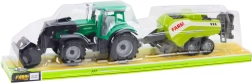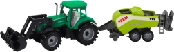 Odkrijte realističen zeleni traktor z delujočim sprednjim nakladačem in priključno balirko za seno. Trpežna plastična izvedba, dovršeni detajli in premikajoči se deli bodo razveselili vsakega malega kmeta. Odlična igra za doma in na prostem, ki spodbuja domišljijo in fino motoriko.