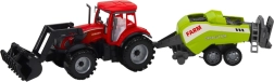 Ta podrobno zasnovan set združuje klasični rdeči traktor s premičnim sprednjim nakladačem in prikolico – balirko za seno. Vsak del je oblikovan z mislijo na realističnost – od teksture pnevmatik do roke nakladača in detajlov balirke. Idealno za otroke, ki obožujejo svet kmetijskih strojev in igre na kmetijo.