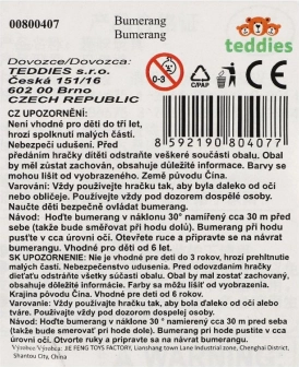 Lahek penast bumerang je zasnovan za enostavno metanje in varno igro. Zaradi optimalne oblike in nizke teže se dobro vrača ter je odlično orodje za razvoj motorike in natančnosti meta. Barviti motivi pritegnejo otroke in spodbujajo njihovo željo po vadbi.